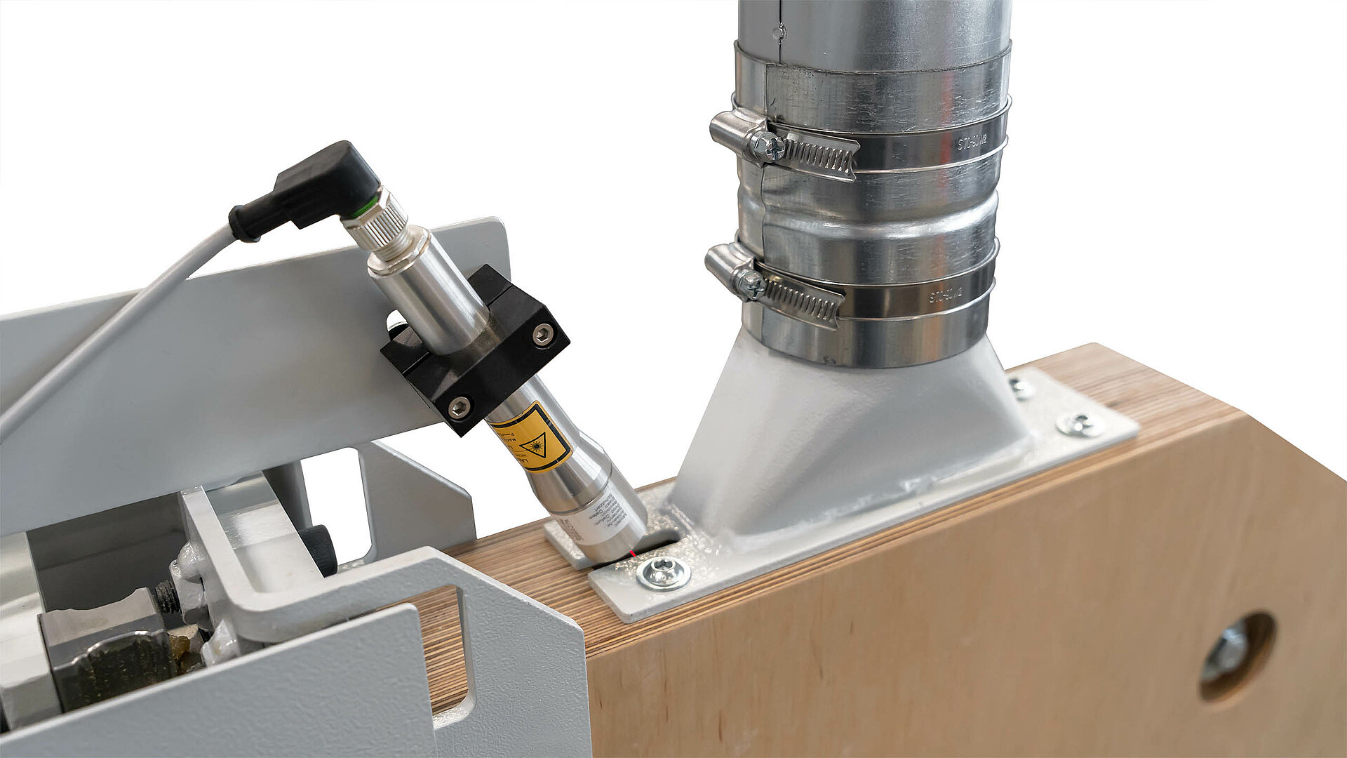 The position laser on the SOLID CUT U 700 is mounted on the machine stand. It can be used to display the saw blade position precisely using a laser line, making it easier to position the workpiece by hand for a crosscut. The laser allows you to work much more accurately without a stop, especially for fast pre-cutting of unedged workpieces.