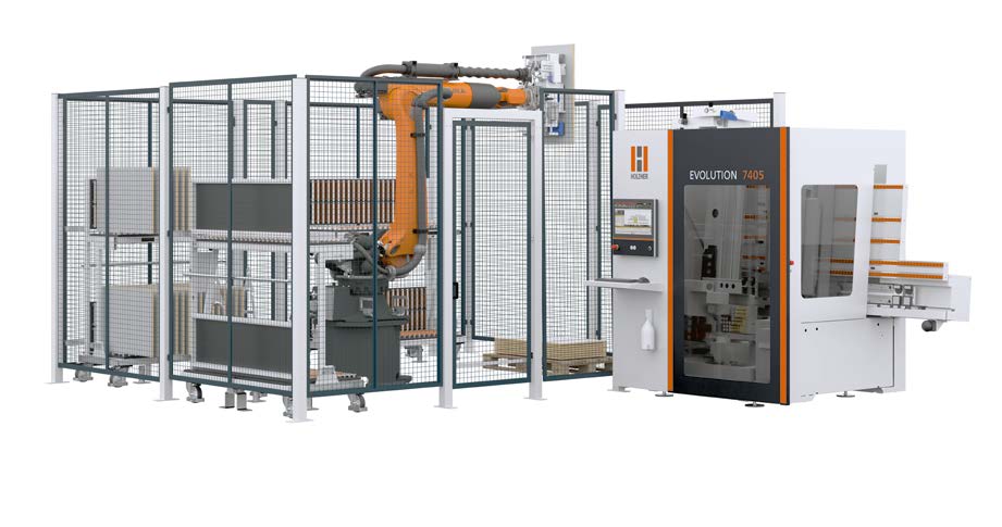 Die EVOLUTION 7405 in Kombination mit der EVOcell bietet höchste Effizienz auf kleinstem Raum. Ab einer Fläche von nur 40 m² ermöglicht sie eine nahezu mannlose Fertigung von Möbelteilen und überzeugt durch ihren flexiblen Roboterarm, der optional mit einer siebten Achse für den Einsatz an mehreren Maschinen ausgestattet werden kann.