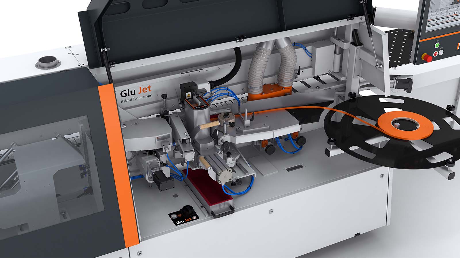 Mit dem HOLZ-HER Glu Jet-System lassen sich alle gängigen Kleberarten in Patronen- wie auch Granulatform problemlos in einem System verarbeiten.